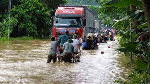 Quốc lộ 2 tại Tuyên Quang ngập sâu 1 mét sau mưa giông mạnh